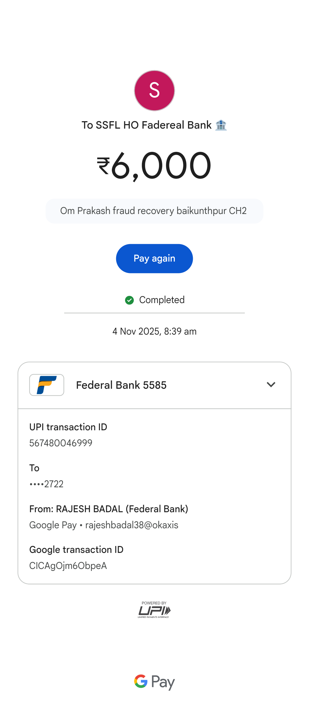 1762226129149_1762225774 - 6000.00 To SSFL HO Fadereal Bank ð¦ on Google Pay.png